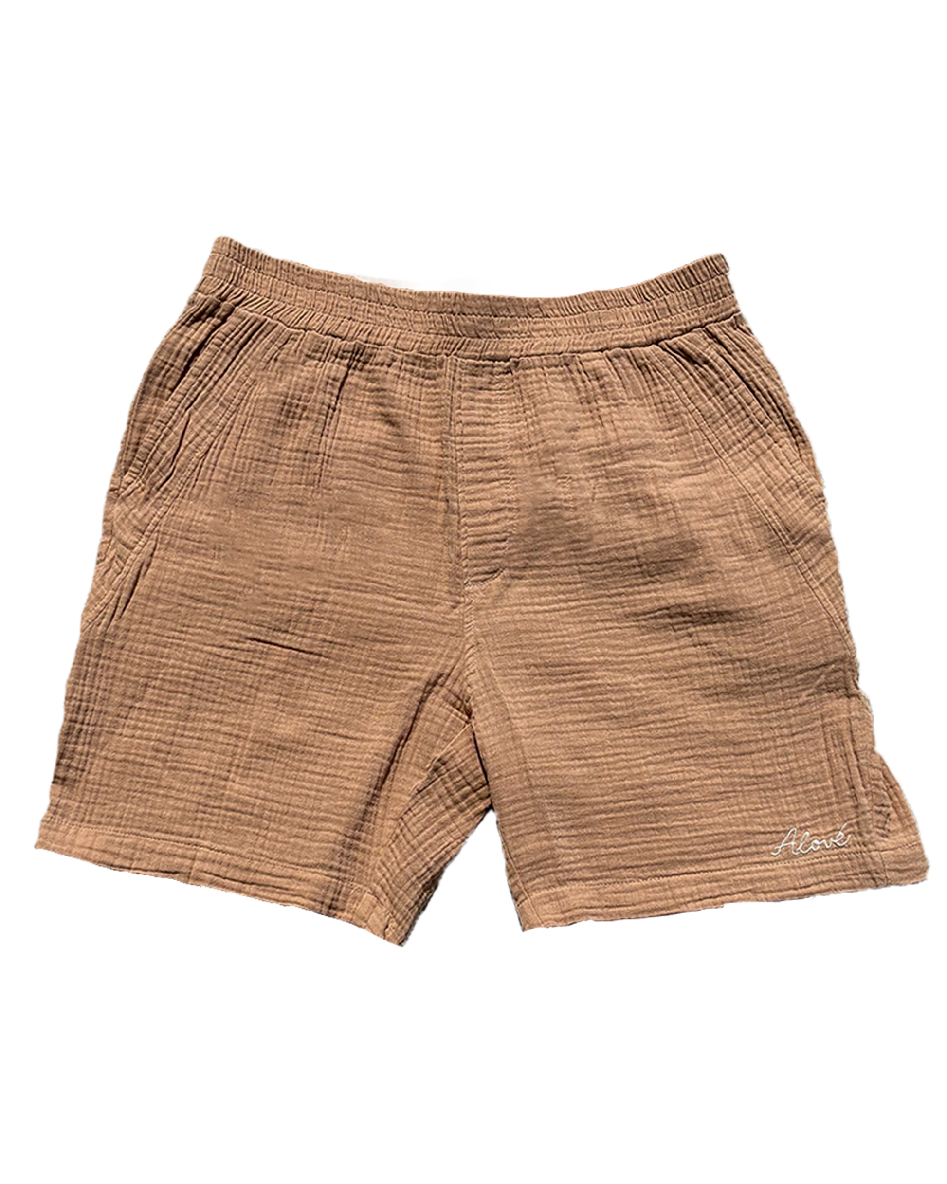 Bej renkte %100 muslin şort, hafif ve nefes alabilir yapısıyla yazın ideal tercihi. Üzerindeki ALOVÉ nakış detayıyla minimalist streetwear tarzını yansıtır. Günlük kombinlerde ve tatil şıklığında rahatlığı ön plana çıkarır. Muslin şort arayanlar için modern ve özgün bir seçim.